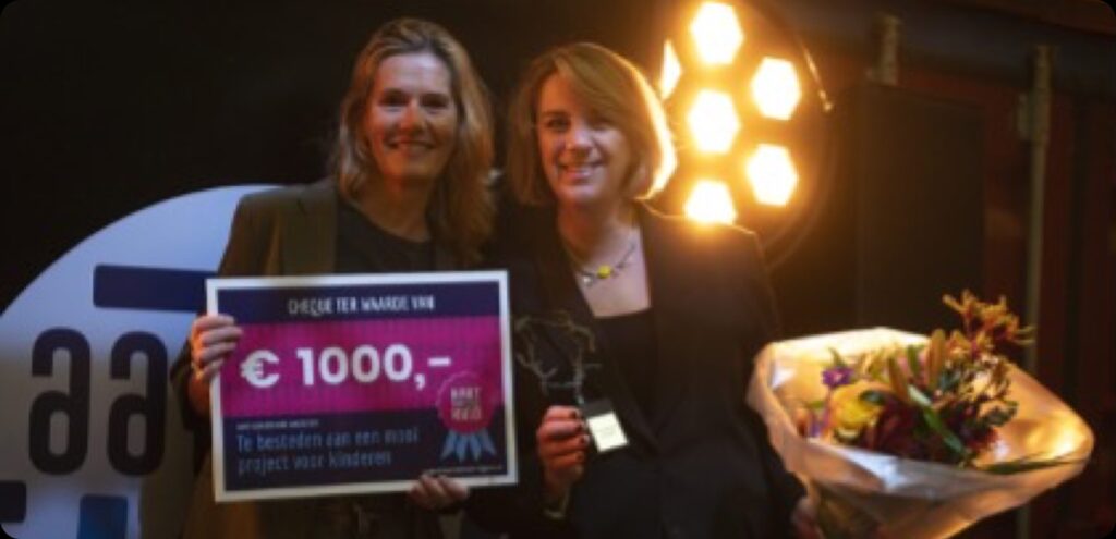 Vivian Brokx en Tine Oerlemans kregen de award voor ’n Tweede thuis dichtbij. Reactie van de jury De opvoeding alleen dragen...